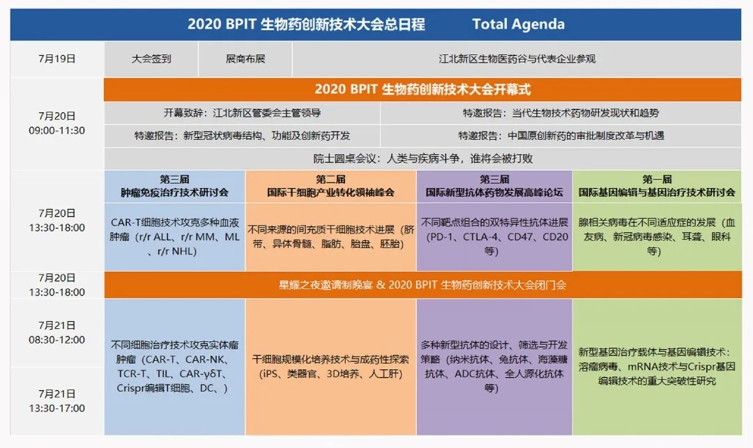 近百位國內生物創新藥的權威領袖發言,數百家領先的生物制藥企業密切關注,逾千位醫藥領域的同行報名參加,數十種創新藥技術集體亮相,聚焦腫瘤免疫、新型抗體、干細胞再生醫學、基因治療等四個熱門生物醫藥領域,2020 BPIT 生物藥創新技術大會即將在中國南京國際青年文化中心拉開帷幕,相約2020年7月19-21日,向下一個創新藥黃金十年致敬,一起見證中國創新藥的新目標新里程!