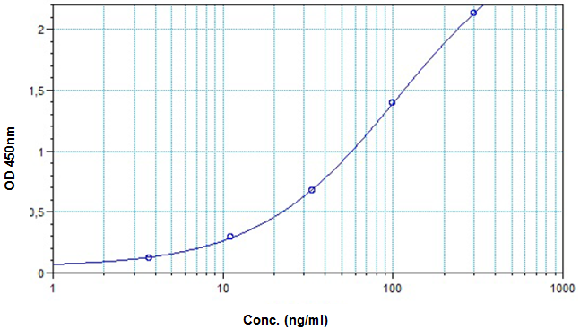 圖例:BioSim?利妥昔單抗ELISA試劑盒的標(biāo)準(zhǔn)曲線圖。(Cat.No. E4371)