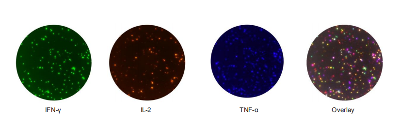△三色FluoroSpot分析 能夠更容易的區分T細胞中不同的細胞因子