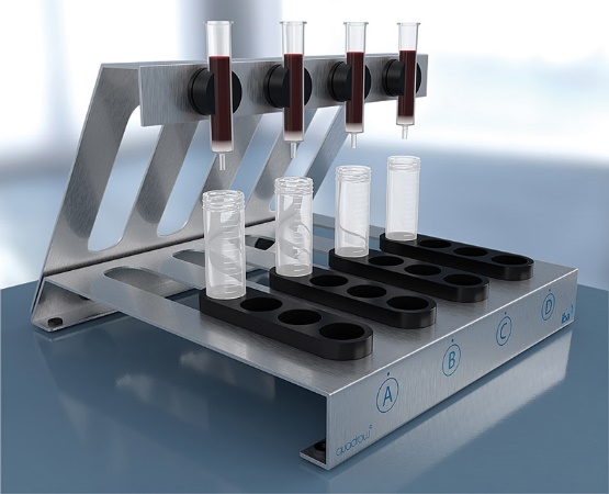 Adapter是Fab-TACS系列最先出來的產(chǎn)品,它是單根柱子分離。在我們血量較大的時候,我們想同時分選,Adapter的分選試劑盒操作起來就比較麻煩了,條件也很難保持一致性。因此,IBA廠家推出了Quadrow的分選試劑盒,它可實現(xiàn)4根柱子同時分選。