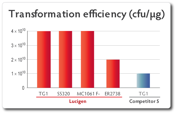 最高轉(zhuǎn)化效率的TG1感受態(tài)細(xì)胞,轉(zhuǎn)化效率≧4×1010 cfu/μg;